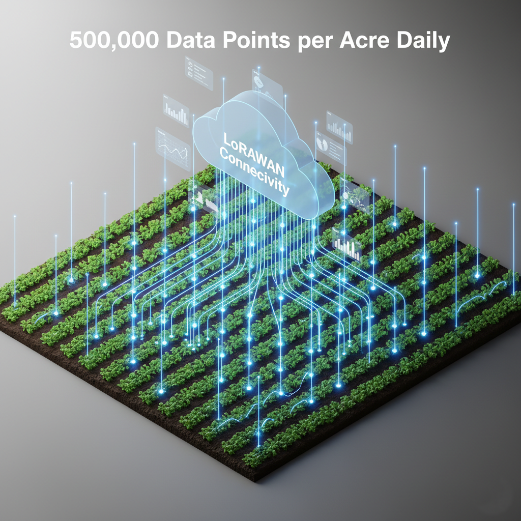 The operational foundation of any AI-driven agricultural system rests upon its capacity to continuously monitor and collect data from the physical environment. Modern precision agriculture deploys sophisticated Internet of Things (IoT) sensor networks that transform farms into data-generating ecosystems. Current state-of-the-art implementations utilize approximately 50 million IoT sensors globally, each continuously monitoring multiple environmental parameters. These sensors collectively process an astounding 500,000 data points per acre daily, creating granular datasets that capture microclimate variations, soil conditions, plant health indicators, and environmental stressors with unprecedented resolution.